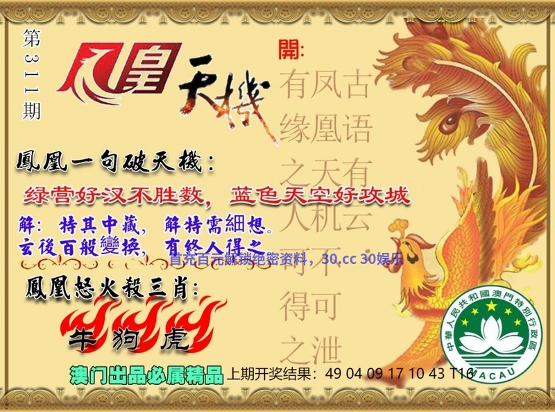 | 310期:绝杀三肖🍀【鸡兔羊】🍀开:虎16准 |